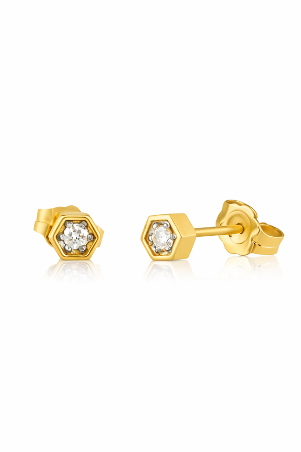 A 14-karat yellow gold earrings, set with a natural diamond. The earrings are elegant and delicate, in a modern, Minimalist style which highlights the sparkle of the diamond.