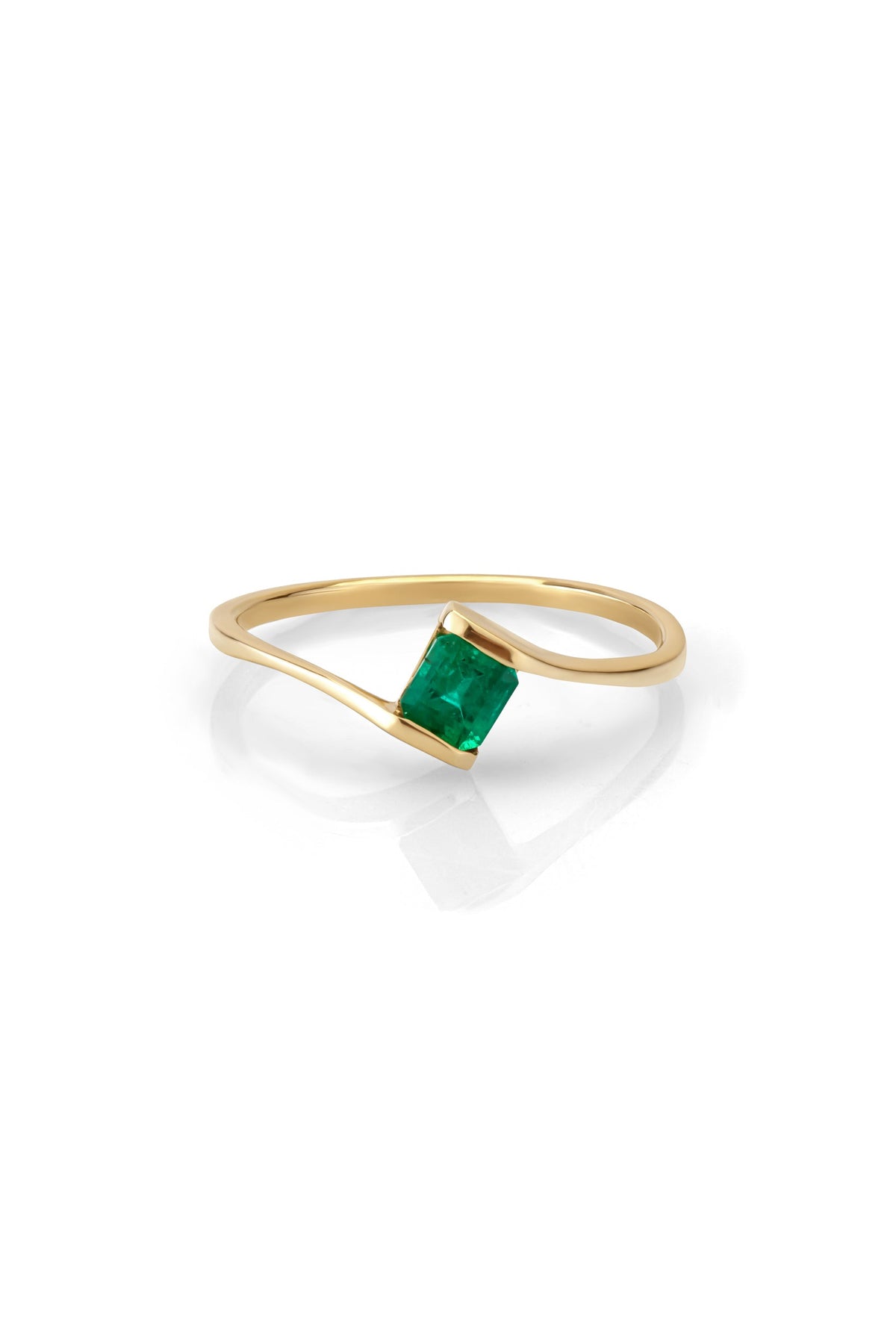 “Claire” A ring with an emerald set in 14-karat yellow gold.