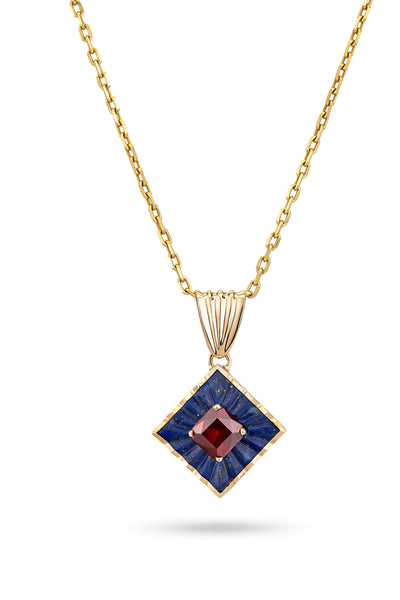 "Mirage" - Lapis lazuli and garnet with 14-karat gold