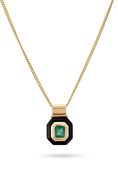 Emerald and black obsidian pendant, with 14-karat gold.